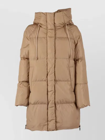 Hooded Imbottito Lungo Coat In Nude