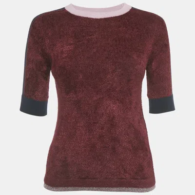 Pre-owned Burgundy Knit Contrast Detail Sweater Xs
