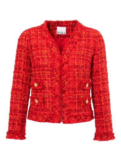 V领流苏边粗花呢夹克
