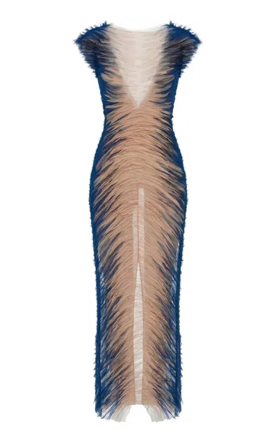 Herminia Rippled Maxi Dress In Blue