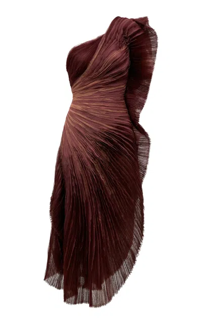 Ocaso Ruffled Midi Dress In Burgundy