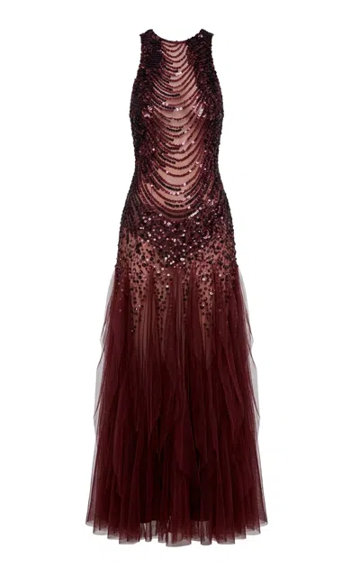 Rocio Sequined Midi Dress In Burgundy