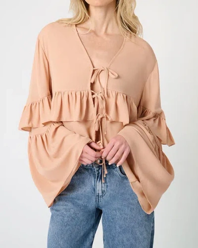 Ruffle Detail Tie Front Blouse In Brown
