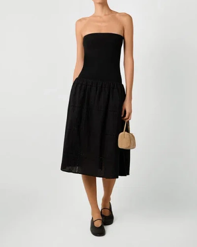 褶饰中长连衣裙 – EYELET BLACK