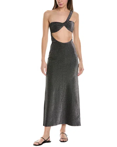 Ruched Asymmetrical Knit Maxi Dress In Black