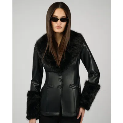 Faux Fur Collar Jacket In Black