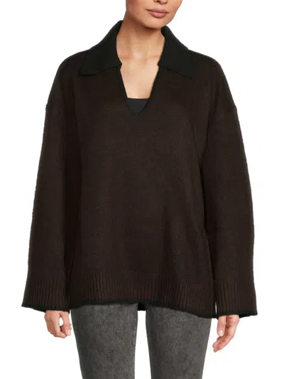 Women's Johnny Collar Sweater In Heather Brown