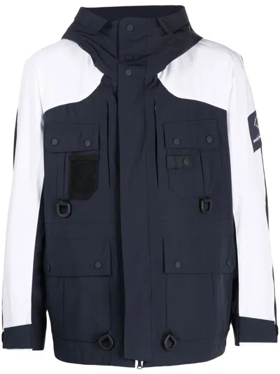 Colour-block Multi-pocket Parka In 蓝色