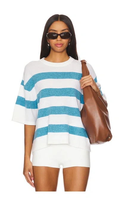 Cashmere Striped Easy T-shirt In Soft White & Mediterranean