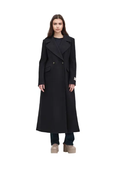 Long Fitted Wool Blend Jacket In Black