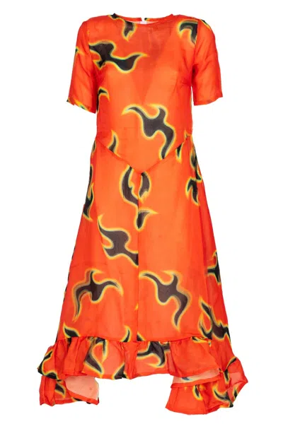 Abito Lungo Arancione Con Stampa Flame In Orange