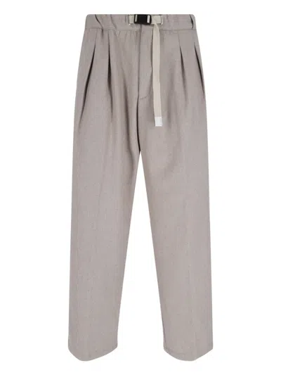 Belt-fastening Pleated Trousers In Neutral