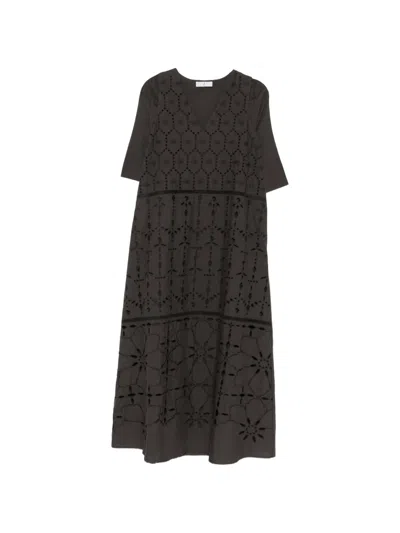 Broderie-anglaise Midi Dress In Brown