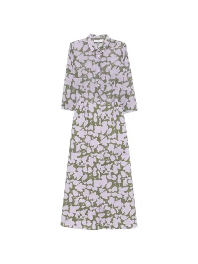 图案排扣中长连衣裙