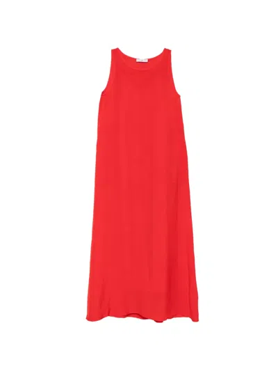 Sleeveless Crew-neck Midi Dress In Red
