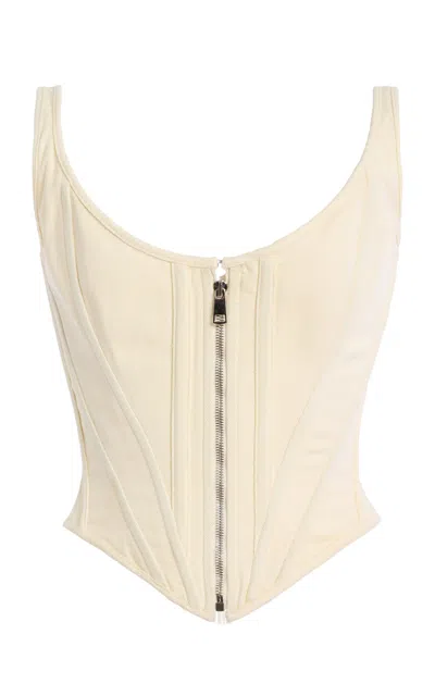 Basketweave Lamé Draped-bust Salon Corset In Gold