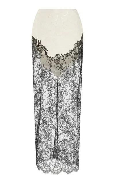 Cotton-blend Chantilly Lace And Metallic Jacquard Maxi Skirt In Ivory