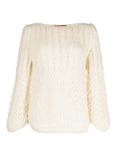 Crew Neck Knit Cardigan With Long Sleeves In White