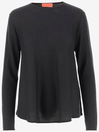 Silk And Cashmere Blend Half-sleeve Sweater In Black