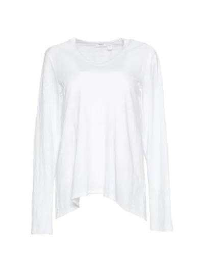 Women's V-neck Long Sleeve Mixed Media T-shirt In White