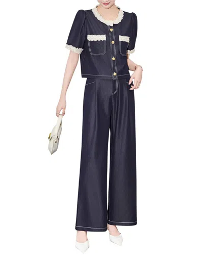 2pc Blouse & Pant Set In Blue