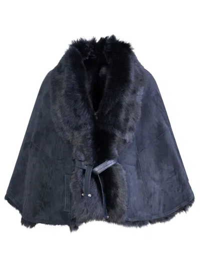 Women's Made For Generationscollection Toscana Shearling Cape In Denim Blue