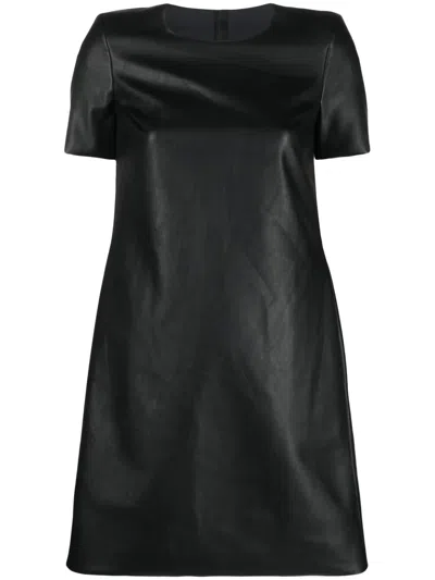 人造皮革短袖迷你连衣裙