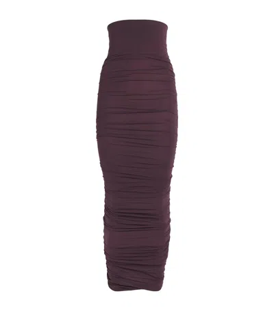 Ruched Bodycon High-rise Midi Skirt In Purple