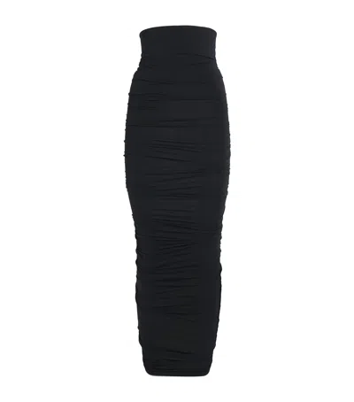 Ruched Bodycon Midi Skirt In Black