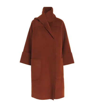 Cashmere Cunardier High Neck Coat In Brown