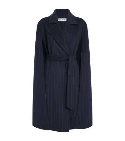 Cashmere Pinstripe Tie-waist Cape Coat In Blue