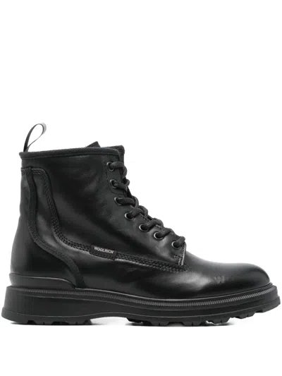 Textured Leather Military Lace-up Booties With Vibram Sole In Black