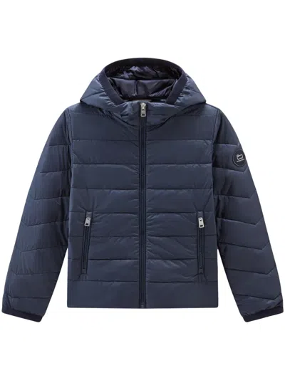 Teen Collar-logo Hooded Puffer Jacket In Blue