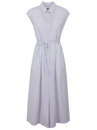 Belted Waist Cotton Dress In Blue