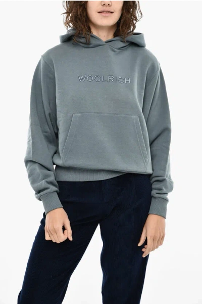 Fleeced Cotton Hoodie With Frontal Logo In Gray