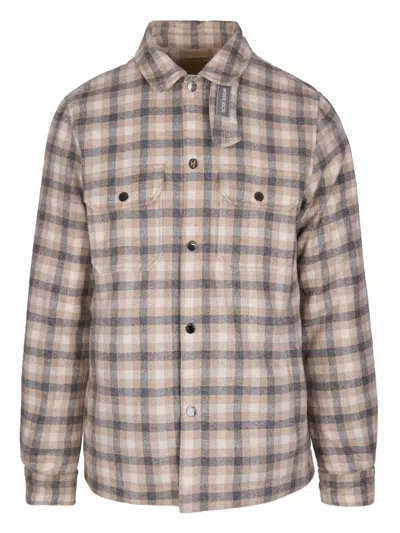 Plaid Pattern Collared Jacket Chest Pockets In Gray