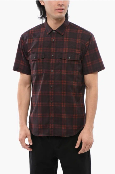 Checkered Mesh Short Sleeved Shirt In Burgundy