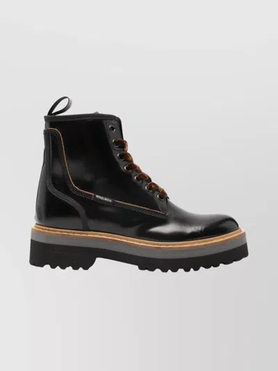 Textured Leather Military Lace-up Booties With Vibram Sole In Black