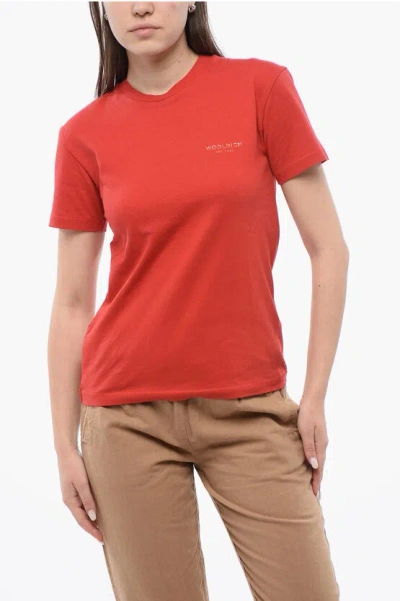 Crew Neck Monochrome Cotton T-shirt In Red