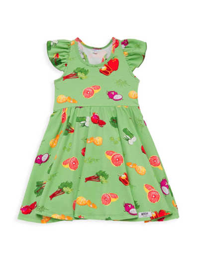 Kids' Baby's, Little Girl's & Girl's Ruffle Sleeve Green Market Twirly Dress