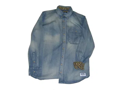 Men's Long Sleeve Shirt Shirt L/s "the Works" Denim/leopard