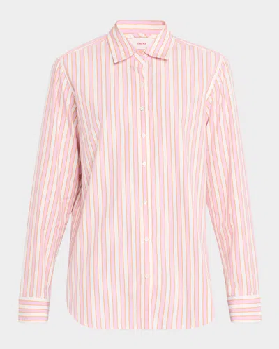 Alicia Striped Cotton Midi Dress In Sunset Pink