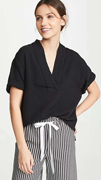 Avery Popover Short Sleeve Top In Black