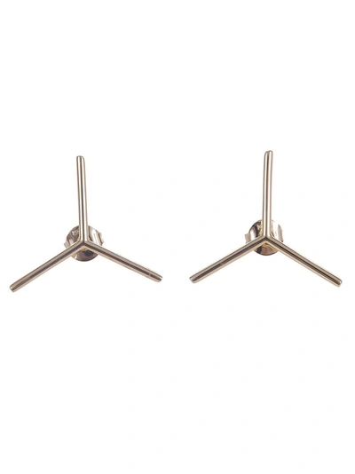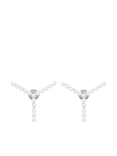 Mini Y Earrings Decorated With Fake Pearls In Metallic