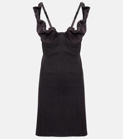Purple Plunging Neck Denim Minidress In Black Purple