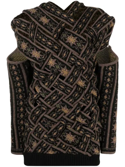 图案嵌花针织镂空毛衣