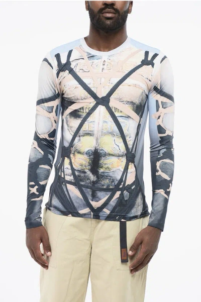 Printed Nylon Stretch Crew-neck T-shirt In Blue