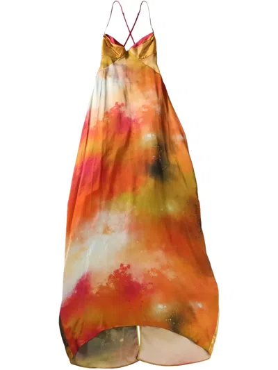 Silk Maxi Dress In Orange
