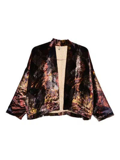 双面抽象印花丝绒真丝夹克