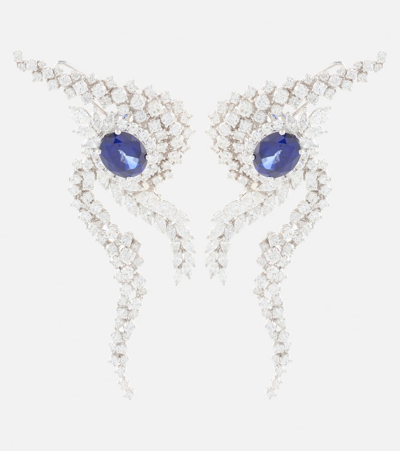 White Gold, Diamond And Sapphire Reign Supreme Stud Earrings In Multi